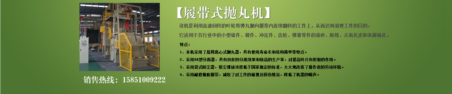 公司主要產(chǎn)品有各種型號(hào)拋丸機(jī)、履帶式拋丸機(jī)、吊鉤式拋丸機(jī)、懸鏈?zhǔn)綊佂铏C(jī)、通過(guò)式拋丸機(jī);各種型號(hào)鑄鋼丸、鋼砂、合金鋼丸、強(qiáng)化鋼丸、不銹鋼丸;噴砂設(shè)備;環(huán)保除塵設(shè)備;鑄造設(shè)備;高效拋丸器;各種型號(hào)拋丸機(jī)配件等,并可根據(jù)用戶產(chǎn)品及產(chǎn)量需求設(shè)計(jì)符合要求的拋丸機(jī);本公司產(chǎn)品從設(shè)計(jì)、開(kāi)發(fā)、生產(chǎn)到服務(wù),全過(guò)程實(shí)行監(jiān)控,其產(chǎn)品在全方位立體的營(yíng)銷服務(wù)網(wǎng)絡(luò)中,遍布全國(guó)各省市區(qū)。